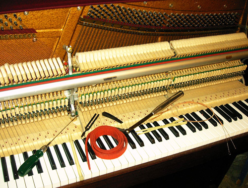 Au piano moderne, la technique d'accord nécessite un geste particulier pour obtenir d'emblée le blocage parfait de la cheville exactement dans la bonne position : le piano moderne et ses caractéristiques acoustiques inharmoniques est à l'origine du métier d'accordeur de pianos